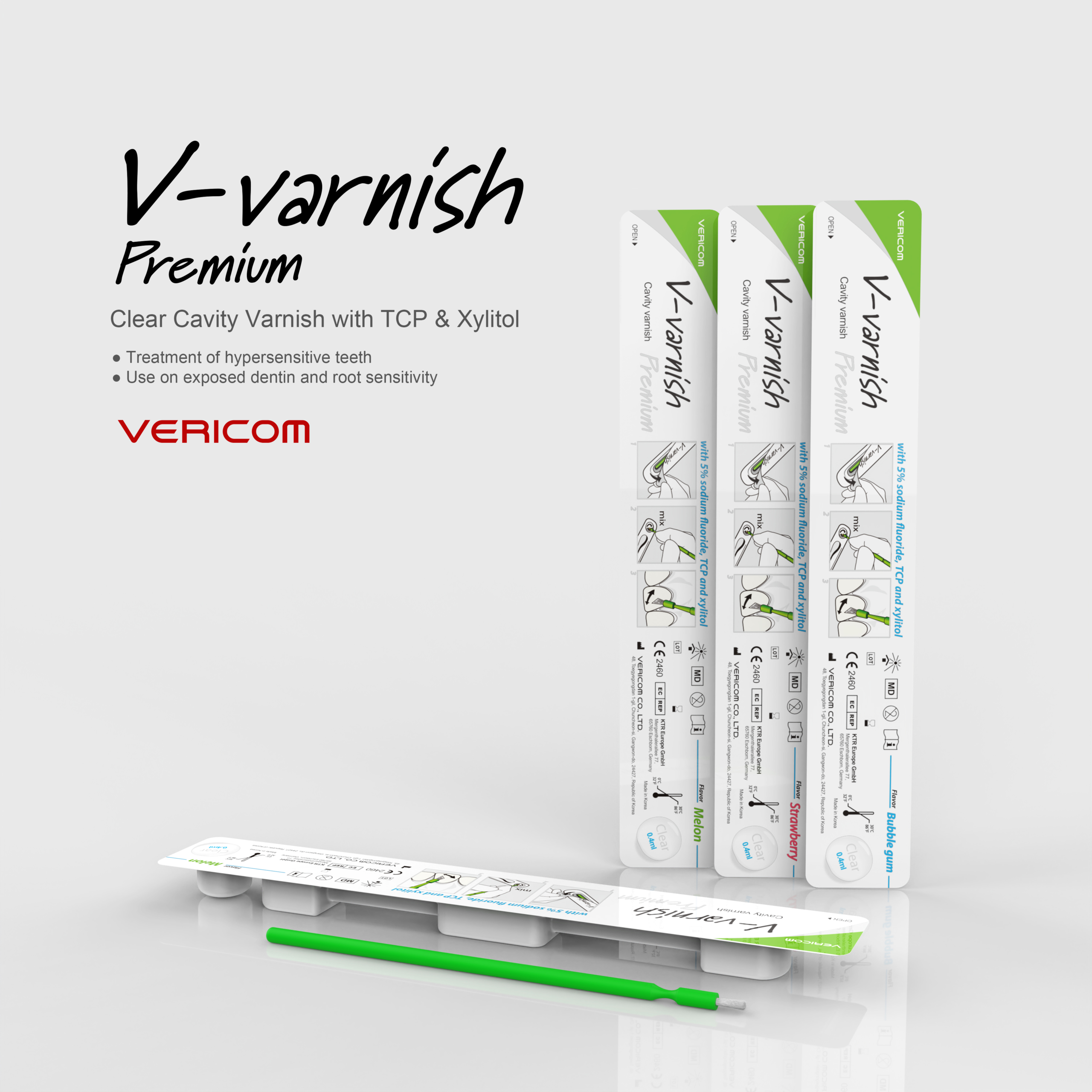 Bezbarwny lakier do ubytków z fosforanem trójwapniowym i ksylitolem dostępny w trzech różnych smakach.